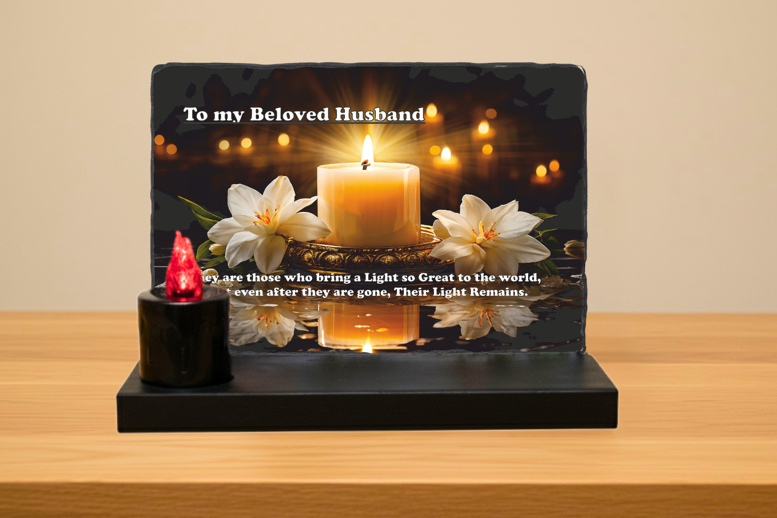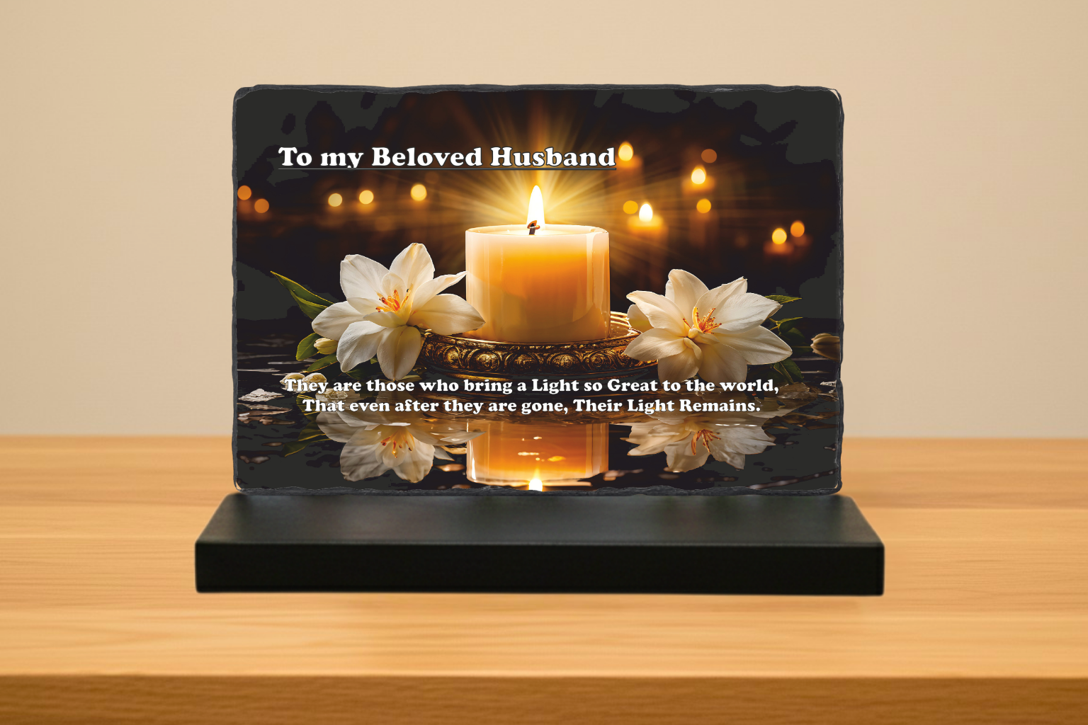 Our memorial plaques are made from real slate with a natural stone uneven texture edge. Slight variations in the size of slate and natural imperfections or pits in the surface, which may be visible in the final print, all give each slate its own distinct and unique features.