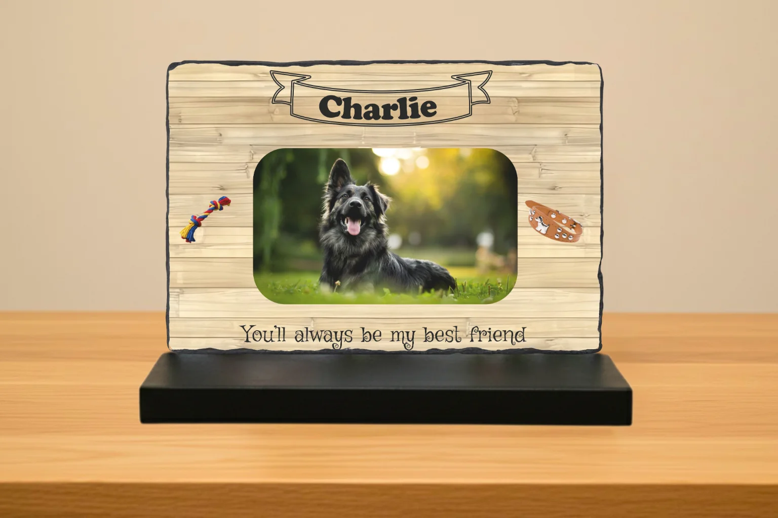 A beautiful mix of memorial plaques with various options to cherish memories of your faithful friend, expressing respect, remembrance, and deep emotions between you and your pet. All designs can be fully personalized to your requirements, including Image, Name & verse. All designs are available in real slate for indoor and outdoor use, or laser-cut 6mm MDF for interior use only.