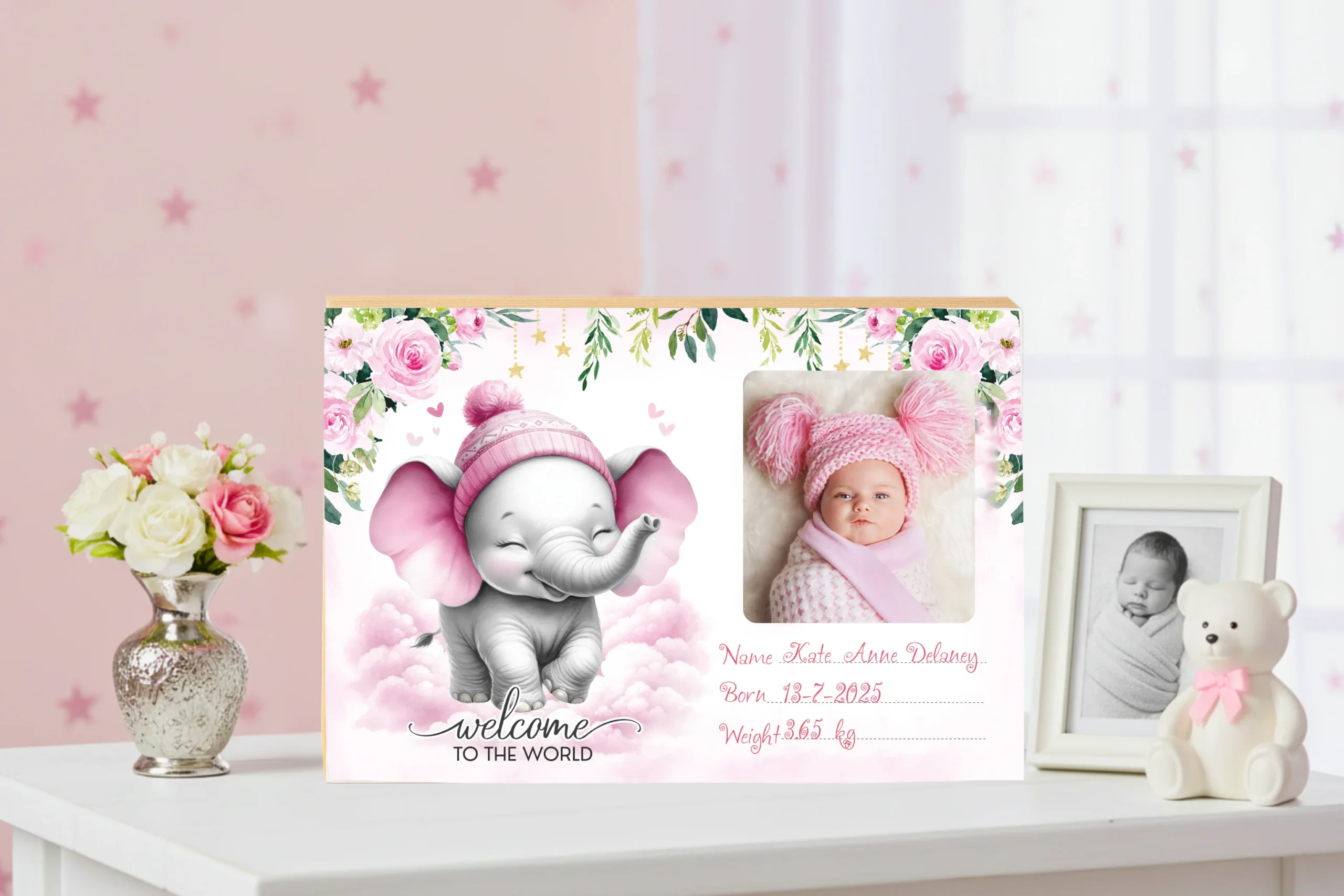 Preserve that magical moment on the birth of a new Boy or Girl (Or twins) with a special photo, Name, Date, and weight (Weight optional). Blue Background for Boy. Pink for Girl. We will do a mock-up proof and WhatsApp or email it back to you for approval before final print.
